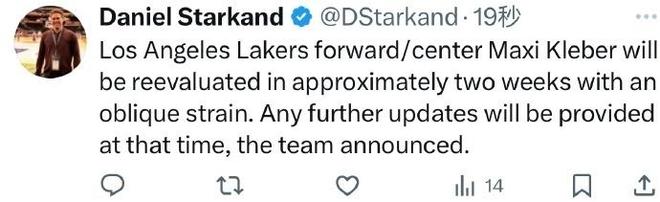 在NBA揭幕战即将打响之际,湖人再度遭遇伤病减员,克勒贝尔因为斜方肌拉伤将无缘揭幕战,且他预计大约两周后接受复查,将缺席赛季初期的比赛。